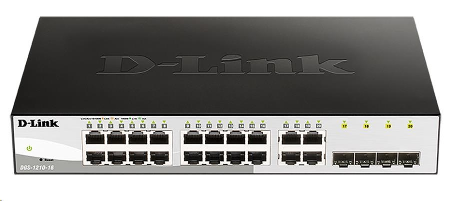 D-Link DGS-1210-16 20-port Gigabit Smart Switch, 16x GbE, 4x RJ45/SFP, fanless