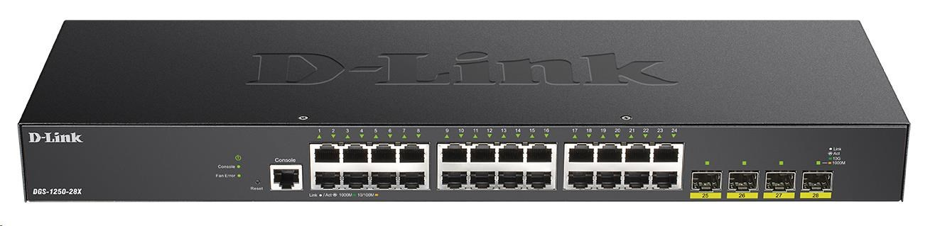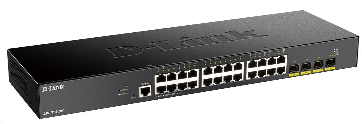 Popis D-Link DGS-1250-28X 28-port Gigabit Smart Switch, 24x GbE, 4x SFP+