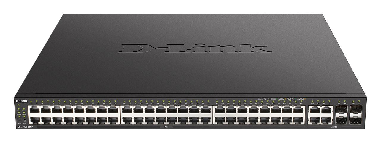 D-Link DGS-2000-52MP Managed PoE switch, 48x GbE PoE+, 4x RJ45/SFP, PoE 370W