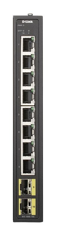 Popis D-Link DIS-100G-10S Průmyslový Gigabit unmanaged switch, 8x GbE, 2x SFP, DIN