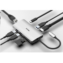 8-in-1 USB-C Hub with HDMI/Ethernet/Card Reader/Power Delivery - Three USB 3.0 SuperSpeed 5 Gbps ports - One USB 3.0 Type-C port with data sync and power delivery of up to 100 W (20 V @ 5 A) - One USB 3.0 port supports Quick Charge BC1.2 - Ultra HD video resolution up to 4K @ 30 Hz - Supports HDMI 1.4 and DisplayPort Alternate Mode over USB-C - HDCP 2.2 compatible - Achieve transfer speeds of up to 1 Gbps - Status LEDs for connection status and data transfer speed - Auto 10/100/1000 Mbps speed detection to always use the highest available speed - SD card & microSD card compatible - SD, SDHC, SDXC (UHS-I mode) compatible - Simply plug-and-play, no software required - Aluminium grey alloy casing.