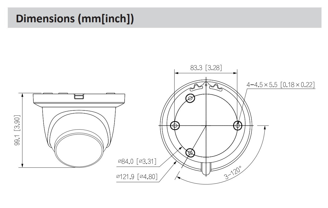 Popis Dahua IPC-HDW5842TM-ASE-0280B-S3, IP kamera, 8Mpx, Eyeball, 1/1.8" CMOS, objektiv 2.8 mm, IR