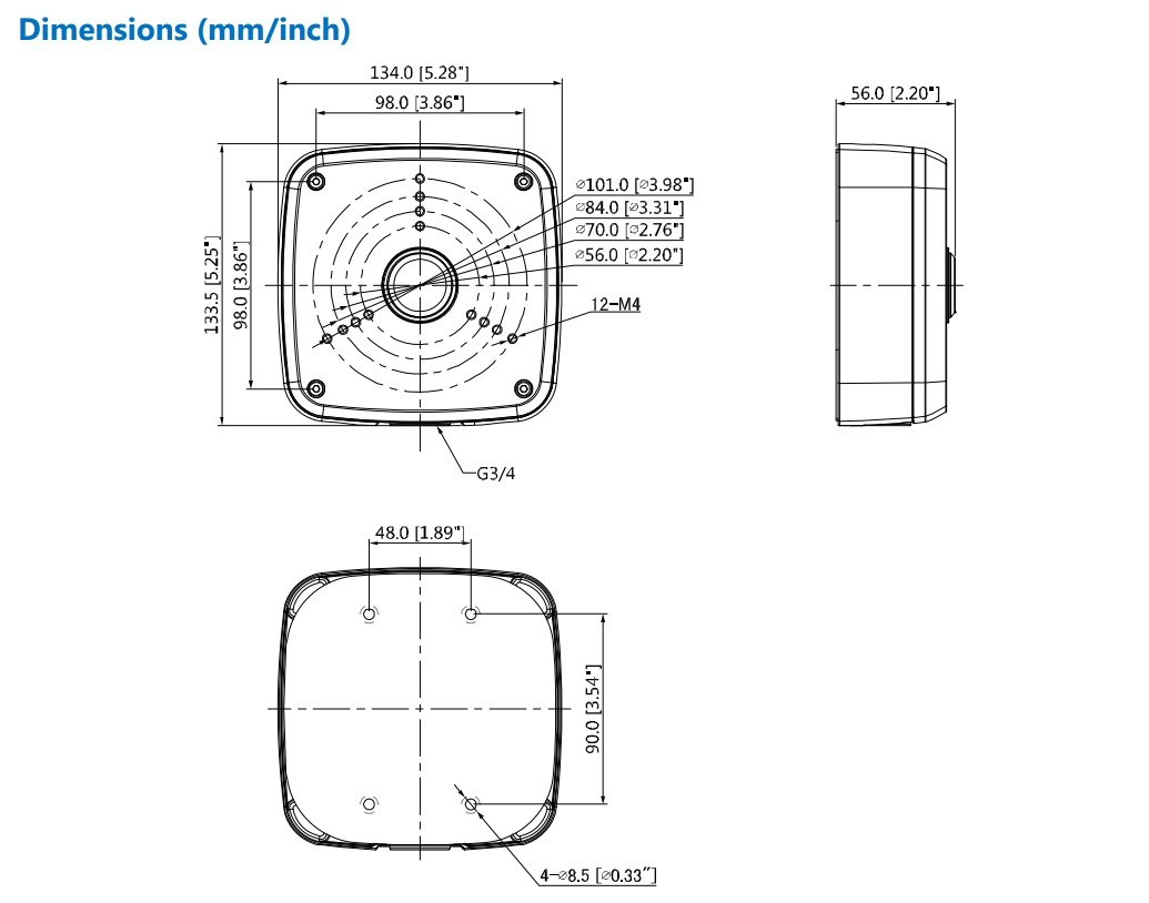 Rozměry (ŠxVxH): 134,0 mm x 133,5 mm x 56,0 mm