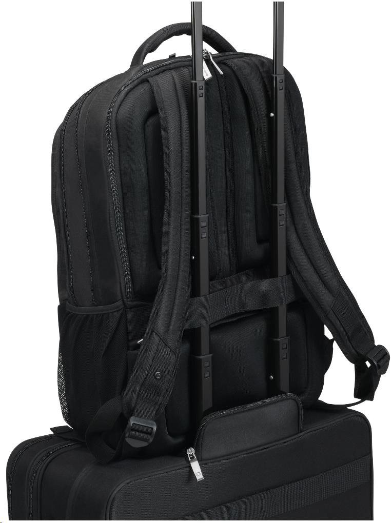 • Comfortable shoulder straps adjustable in length, ergonomic back cushioning made of breathable material and trolley fastening strap