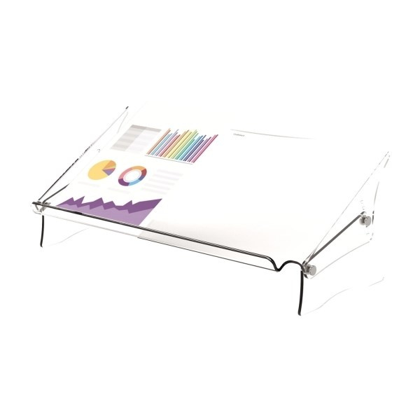• série Clarity ™ • minimalistický čirý design vhodný do jakéhokoliv prostoru • 6 pozic nastavení výšky základny • výškové nastavení: 160 mm, 175 mm, 190 mm, 205 mm, 220 mm, 235 mm. • úhel náklonu mezi 17 ° - 39 ° • určeno pro formát papíru až A3 • čelní profilovaná hrana zabraňuje sklouznutí těžších dokumentů • barva čirá • materiál tvrzený akryl • nosnost 6 kg • rozměry (š x v x h) 536 x 160 x 278 mm.