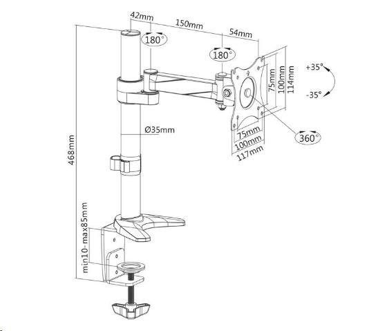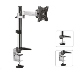 Držák monitoru na stůl Fiber Mounts MC717 Stolní držák na monitor 15÷30", otočný, sklopný, výškové nastavení, funkce pivot Velmi pěkný, kvalitní a hlavně cenově dostupný stolní držák pro zavěšení monitorů s úhlopříčkou 15÷30 palců. Plná nastavitelnost polohy obrazovky - otáčení do stran, náklon, výšková regulace, horizontální nebo vertikální otočení obrazovky, korekce roviny. Stolní držák MC717 podporuje VESA standard 75x75 a 100x100, doporučené maximální zatížení je 8kg. Součástí balení je montážní materiál a 2 typy uchycení na stolovou desku - na krajní hranu stolu nebo skrz stolovou desku kdekoliv do prostoru. Držák je výborné kvality a opravdu pěkného designu. Držák na monitor do kanceláře, domácnosti, firmy nebo do škol -Fiber Mounts MC717 - otočný, sklopný, výškově nastavitelný, funkce pivot, TOP kvalita, design, vynikající cena za stolní držák Technické údaje: nosnost 8kg podpora VESA standardu 75x75 a 100x100 doporučujeme na monitor s úhlopříčkou 15" až 30" otáčení do stran +180° / -180° náklon +35° / -35° horizontální nebo vertikální otočení obrazovky monitoru - funkce pivot korekce roviny maximální odsazení monitoru od nosníku 246mm 2 typy uchycení na stůl - na kraj stolu / skrz stůl kdekoli do prostoru minimální síla stolové desky 10mm maximální síla stolové desky 85mm průměr nosníku 35mm výška nosníku od stolové desky 400mm nastavitelná výška ramene vynikající kvalita snadné nastavení pozice obrazovky monitoru materiál hliník barva stříbrná + chrom záruka 3 roky.