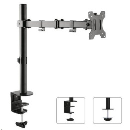 Držák monitoru na stůl Fiber Mounts SDM753 Výškově nastavitelný, otočný, sklopný stolní držák na monitor 13-32" Levný ale kvalitní držák na monitor s uchycením na stolovou desku - 2 typy uchycení součástí balení. Držák umožňuje monitor po zavěšení výškově polohovat, otáčet bez omezení do stran, naklápět. Držák podporuje VESA standardy 75x75 a 100x100, nosnost je 8kg. Černé provedení. Balení obsahuje instalační materiál. Technické údaje: nosnost 8kg na monitory s úhlopříčkou 13" až 32" (33cm až 82cm) držák podporuje VESA standardy 75x75 a 100x100 maximální vzdálenost od nosníku 459mm nastavení vzdálenosti od nosníku dle potřeby otáčení do stran dle potřeby +/- 180° nastavení náklonu +/- 45° součástí balení jsou 2 typy úchytů na stolovou desku úchytky na kabeláž solidní kvalita barevné provedení černé záruka 2 roky.