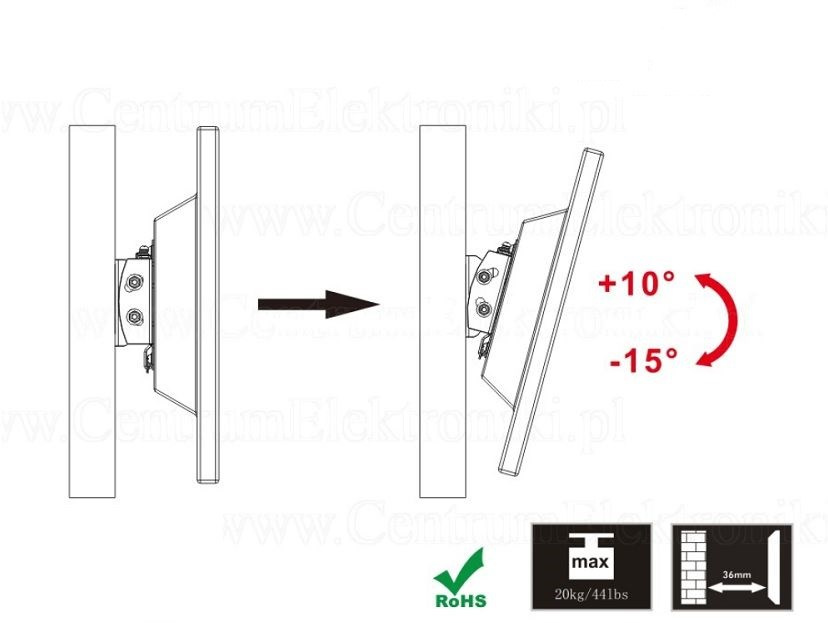 Sklopný držák na Tv a monitory 13"-30", VESA 75x75 a 100x100, náklon +10° až -15°, vzdálenost od zdi 36mm, nosnost 20kg.Více