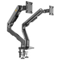 Stolní držák na 2 monitory NB G55 Profesionální stolní držák na 2 monitory 24-34", nezávislé polohování každého ramene, otáčení +/-180°, naklápění +60°/-15°, nastavení výšky 190-475mm, délky o uchycení 0-640mm, 1x USB, vedení kabeláže, 2 stolní úchyty, VESA 75x75 a 100x100, nosnost 2x16kg Stolní držák pro zavěšení 2 monitorů / Tv / displejů s úhlopříčkou 24-34". Nezávislé nastavení polohy každé obrazovky dle potřeby. Ramena mají plynový píst, který je nutné nastavit na hmotnost zavěšené obrazovky od 5kg do 16kg. Výškové polohování od 190mm do 475mm, otáčení do stran +/- 180°, naklápění +60°/-15°, nastavení vzdálenosti od stolního uchycení 0-640mm, funkce pivot +/- 360°, podpora VESA 75x75 a 100x100 s možností zakoupení nástavce na 100x200, 200x100 a 200x200. Dodáváme včetně 2 typů stolních úchytů na desky 20-90mm: svěrák pro fixaci na okraje stolů a šroubovice pro fixaci do prostoru stolové desky přes otvor 10-50mm. Systém pro vedení kabeláže. Instalační materiál. Barevné provedení černé. Nejvyšší kvalita. Záruka 5 let. Profesionální stolní kancelářský držák na 2 monitory NB G55 Technické údaje: nosnost 32kg minimální hmotnost 1 obrazovky je 5kg a maximální 16kg ramena mají plynový píst pro výškové polohování s nastavením na hmotnost obrazovky ideální na monitory a Tv s úhlopříčkou 24-34" držáky podporují VESA standardy 75x75 a 100x100 nezávislé polohování každého ramene otáčení do stran +/- 180° naklápění dolů až -15° a nahoru až +60° nastavení vzdálenosti od stolního úchytu 0-640mm nastavení výšky 190-475mm (+/-285mm) funkce pivot: rotace +/- 360° systém pro vedení kabeláže 1x USB port na stolním úchytu 2 typy úchytů na (stolové) desky 20-90mm: na okraj nebo do prostoru přes otvor 10-50mm nejvyšší kvalita provedení barva černá záruka 5 let Profesionální držák pro zavěšení dvou monitorů na stůl NB G55 Držák na 2 monitory NB G55 podporuje VESA standardy: VESA 75x75 VESA 100x100 Držák umožňuje snadné výškové polohování monitoru od 190mm do 475mm díky plynovým pístům. Ty je nutné nastavit na hmotnost zavěšeného monitoru od 5kg do 16kg. Hmotnost monitoru nesmí být nižší jak 5kg, jinak nebude možné výšku měnit, monitor by byl stále v nejvyšší poloze. Držák na 2 monitory do kanceláře nebo pracovny NB G55 2 typy uchycení na stoly / desky: svěrák s 2 bodovým fixováním na desky o síle 20-90mm šroubovice, fixace k desce 20-90mm přes otvor 10-50mm 2 způsoby uchycení na stolové desky NB G55 Držáky NB G55 jsou vhodné na: klasické rovné monitory prohnuté (curved) monitory širokoúhlé monitory televizory All in One Pc dotykové obrazovky - monitory i televizory zobrazovací panely s podporou VESA.