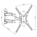 ynikající držák pro zavěšení plochých televizorů s úhlopříčkou 13-52 palců, otočný a sklopný, délkově nastavitelný Levný, přesto vynikající držák pro zavěšení všech typů a značek plochých televizorů na stěnu. Držák umožňuje otáčení do stran, náklon dole i nahoru, korekci roviny, nastavování vzdálenosti obrazovky od stěny. Ocelová konstrukce zajišťuje spolehlivé a bezpečné zavěšení Tv, nechybí ani zajištění proti vysazení. Technické údaje: nosnost 30kg podporuje VESA standardy 75x75 až 400x400 vhodný pro zavěšení všech typů a značek plochých televizorů doporučená úhlopříčka televizoru 13 až 52 palců otáčení do stran +/- 90° náklon dole i nahoru +/- 12° nastavitelná vzdálenost od zdi 65 až 406mm korekce roviny +/- 3° designové krytky na fixování kabeláže vynikající kvalita ocelová konstrukce zajištění proti vysazení Tv snadná a rychlá montáž barevné provedení černé záruka 3 roky Držák Tv Fiber Mounts D7C43 podporuje VESA standardy: VESA 75x75 VESA 100x100 VESA 200x100 VESA 200x200 VESA 300x300 VESA 400x200 VESA 400x300 VESA 400x400.