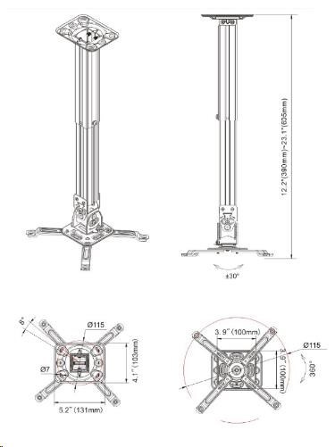 Stropní držák pro dataprojektor NB T817-60 Spolehlivý, nastavitelný stropní držák pro zavěšení projektorů Kvalitně zpraovaný držák pro projektory s možností výškového nastavení. Projektorem je možné po zavěšení otáčet o 360°, nechybí náklon +/- 20° ani systém pro vedení kabeláže. Nosnost držáku je 11 kg, design je kompletně vyveden v bílém provedení. Výhodou je možnost instaace na šikmý strop. Doporučujeme i náročnějším zákazníkům. Technické údaje: nosnost 11kg otočný o 360° náklon +/- 20° nastavitelná vzdálenost od stropu 383 - 600mm nastavení úhlu vůči stropu +/- 45° možnost instalace na šikmý strop bílé provedení vysoká kvalita pevná a odolná konstrukce systém vedení kabeláže instalační materiál součástí balení záruka 10 let.