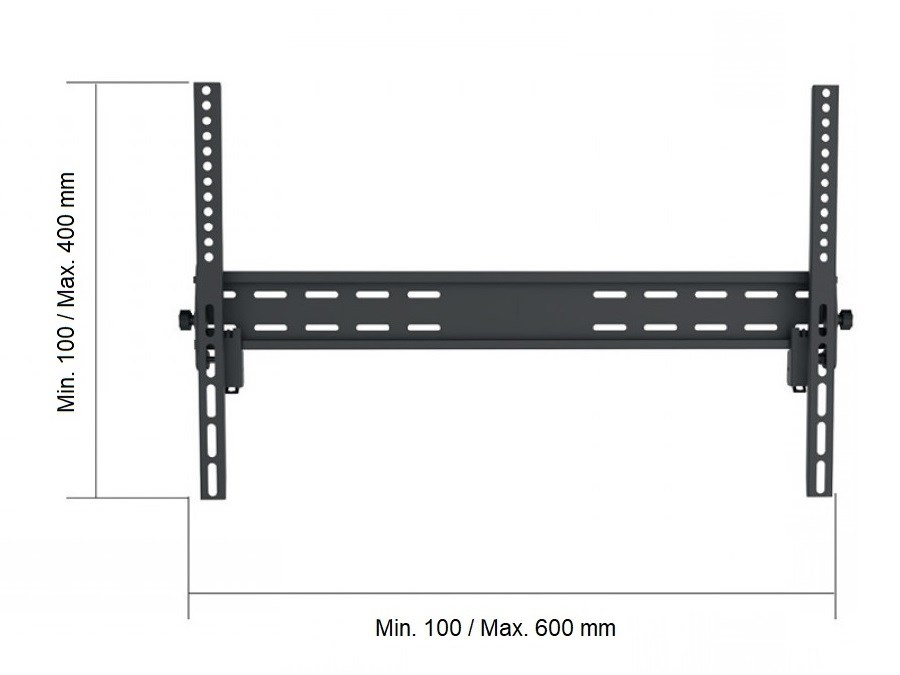 Držák na Tv 43-72". možnost naklápění +8°/-12°, odsazení od zdi 45mm, VESA 100x100 až 600x400, instalační materiál, nosnost 45kg.Více