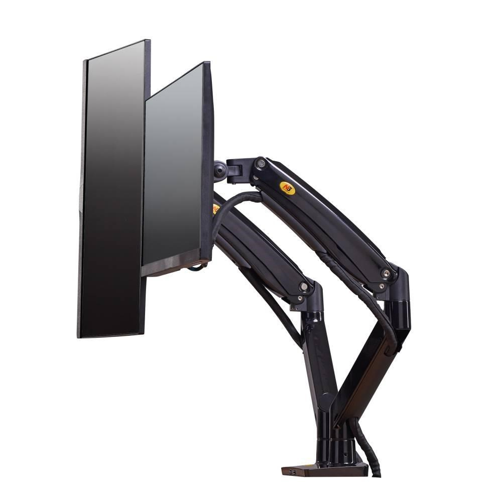 Dvojmonitorový stolní držák NB F195AB Profesionální stolní držák na 2 monitory 19-37", 3D nezávislé nastavení polohy, design, kvalita, ergonomie, VESA 75x75 a 100x100, nosnost 18kg Špičkový profesionální stolní držák pro zavěšení 2 monitorů a jejich nezávislé nastavení polohy: otáčení do stran, nastavení výšky, nastavení vzdálenosti od stolního úchytu, náklon, rotace obrazovky. korekce roviny. Hmotnost každého monitoru musí být v rozmezí 3-9kg. Balení obsahuje 2 typy úchytů na stolovou desku, instalační materiál a návod. Barevné provedení černé. Záruka 3 roky. Stolní držák na 2 monitory 19-37" do kanceláře nebo pracovny NB F195AB Technické údaje: celková nosnost 18kg hmotnost každého monitoru musí být v rozmezí 3 ÷ 9 kg podpora VESA standardu 75x75 a 100x100 v případě potřeby za příplatek možnost rozšíření VESA na 200x100 nebo 200x200 doporučená úhlopříčka monitorů 19" až 37" nezávislé nastavení výšky: min. 220mm, max. 565mm nezávislé otáčení monitoru do stran +/- 180° nezávislé naklonění monitoru +53° až -8° nezávislá rotace monitoru - otočení monitoru na šířku nebo na výšku, korekce roviny nezávislé nastavení vzdálenosti od stolního úchytu: 0mm až 700mm uchycení na stolové desky o průměru 10mm až 90mm balení obsahuje 2 typy úchytů na stolové desky (svěrák na okraj stolu + šroubovice do prostoru stolu) 2x USB port vynikající kvalita, krásný design snadné nastavení polohy monitorů spolehlivost, bezpečnost barevné provedení černé, stříbrné nebo bílé záruka 3 roky Polohovatelný stolní držák 2 monitorů do kanceláří a pracoven NB F195AB Dvojmonitorový stolní držák podporuje VESA standardy: VESA 75x75 VESA 100x100 za příplatek rozšíření na VESA 200x100 za příplatek rozšíření na VESA 200x200.