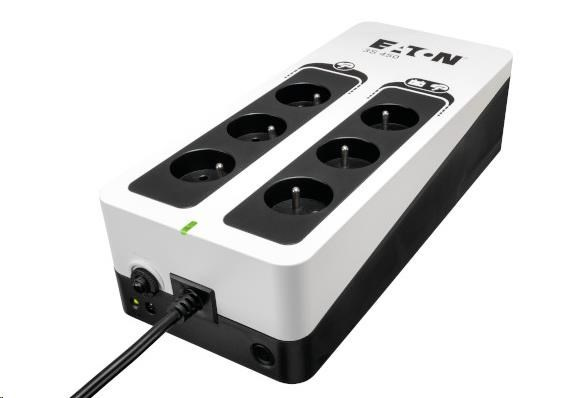 | Zvláštní charakteristiky | Atraktivní design a lesklý povrch činí z Eaton 3S perfektní řešení pro moderní kancelářské prostředí Kompaktní jednotku lze umístit na stůl nebo pod něj, případně ji lze připevnit na zeď Vysoce výkonná přepěťová ochrana splňující normu IEC 61643-11 6 zásuvek pro připojení PC + periferií Zásuvky French (FR) pro snadné připojení Snadno vyměnitelné baterie napomáhají delší životnosti systému UPS |