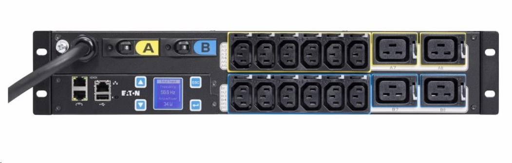 | Zvláštní charakteristiky | Měření ve fázích, měření proudu protékajícího jističem a měření na vstupu Řídicí modul vyměnitelný za provozu s pokročilým LCD Volitelná sonda pro měření teploty a vlhkosti Systém proti nechtěnému vytržení zástrčky eGrip integrovaný ve výstupních zásuvkách IEC, kompatibilní se všemi standardními zástrčkami IEC Vestavěný systém zásuvek P-lock, blokovací mechanismus s napájecími kabely P-lock Řetězově propojte až 8 jednotek ePDU, omezte náklady na infrastrukturu sítě Monitorování napájecího řetězce a získávání informací v reálném čase ve vašem datovém centru prostřednictvím různých verzí softwaru Eaton Intelligent Power Manager Provozní teplota 60 °C Barevně rozlišené zásuvky a skupiny zásuvek pro jednoduché vyrovnání zátěže Hydraulicko-magnetické jističe s ochranou proti náhodnému vypnutí |