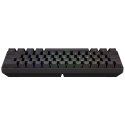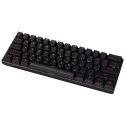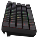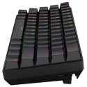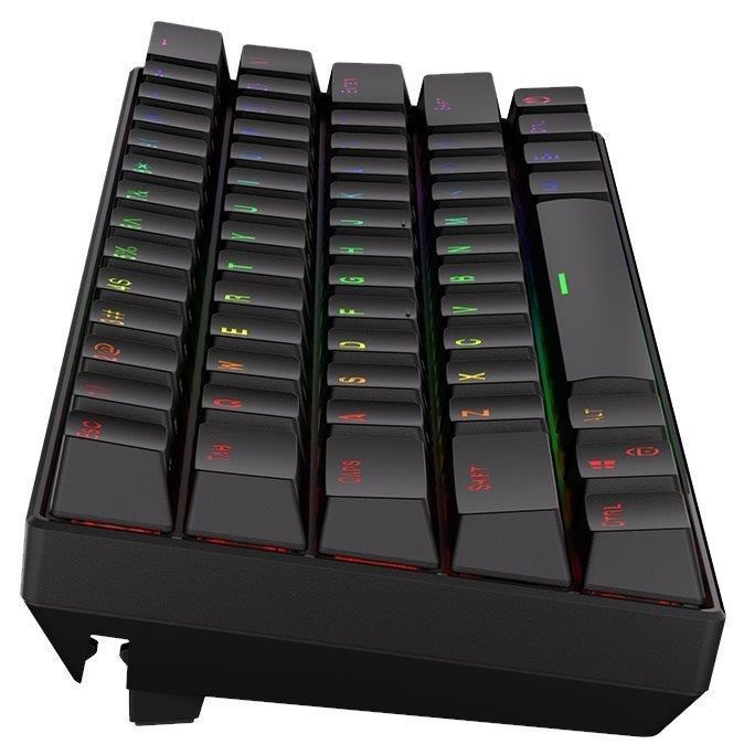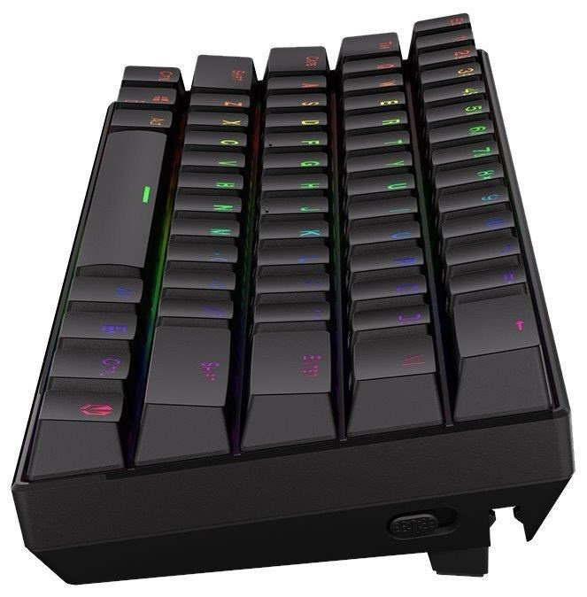 Akční nabídky na váš e-mailBezdrátová mechanická herní klávesnice v kompaktním provedení je vybavena spínači Kailh Brown s perfektní odezvou a životností až 70 milionů stisků. Klávesy jsou RGB podsvícené a nabízí možnost vlastního nastavení. Klávesy jsou navíc také plně programovatelné, díky tomu lze klávesnici individualizovat přesně podle potřeb hráče a hrané hry. Samozřejmě nechybí ani funkce Anti-Ghosting a N-Key rollover. Připojení k počítači lze realizovat jak bezdrátově skrze Bluetooth či miniaturní USB přijímač a technologii 2,4 GHz, tak i drátově pomocí USB kabelu, který slouží zároveň pro nabíjení.