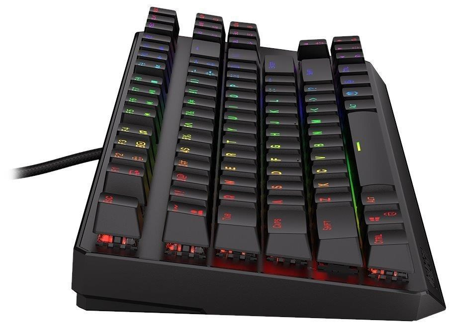 Akční nabídky na váš e-mailKompaktní mechanická klávesnice pro každého vášnivého hráče. Díky spínačům Kailh Blue nabízí výbornou odezvu a výdrž přes 50 milionů stisků. Konstrukce klávesnice z hliníku vykazuje jen tu nejvyšší možnou odolnost a stabilitu. Klávesy jsou RGB podsvícené a nabízí možnost vlastního nastavení. Klávesy jsou navíc také plně programovatelné, díky tomu lze klávesnici individualizovat přesně podle potřeb hráče a hrané hry. Samozřejmě nechybí ani funkce Anti-Ghosting a N-Key rollover. Připojení je realizováno skrze odnímatelný USB kabel.