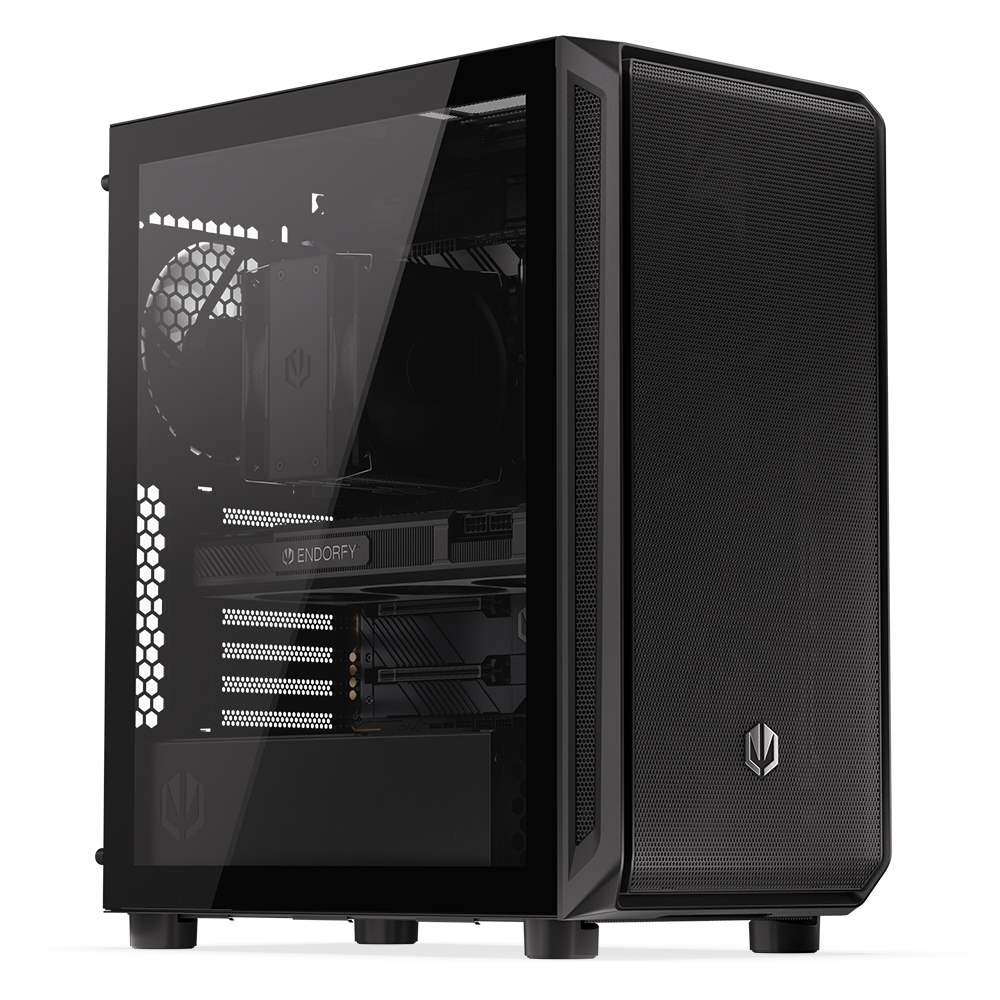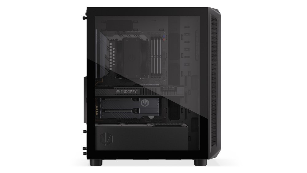 Toto je jeden z největších (o něco kratších než série ENDORFY Arx 700), jaké jsme kdy vytvořili. Měří 486×228×429 mm – dost na to, aby se tam vešel vysoký chladicí systém (až 179 mm), 7 ventilátorů (včetně 5 Stratus 140 PWM, které vám dáme pro dobrý začátek) a většina grafických karet dostupných na trhu ( do 350 mm). Vše sedí v příjemném vánku, jemně perforované přední a horní panely propouštějí čerstvý vzduch a blokují prach. Můžete to zkontrolovat přes okno z tvrzeného skla.