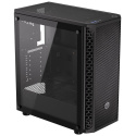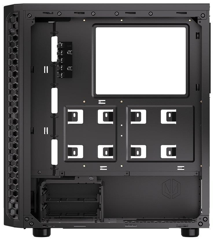 Akční nabídky na váš e-mailSkříň formátu Middle Tower s průhlednou bočnicí z tvrzeného skla nabízí dvě 2,5" pozice pro SSD disky a dvě 3,5" pozice pro pevné disky. Na horní části se nachází dva USB 3.0 porty, sluchátkový výstup a audio vstup pro mikrofon. Vybavena je čtyřmi 120 mm ventilátory, které spolu s perforovaným čelním panelem zajišťují dostatečné proudění vzduchu. Důmyslné řešení umožňuje pohodlné umístění až 360 mm dlouhého výměníku vodního chlazení na přední straně. Ve skříni je dostatek prostoru pro chladič CPU do výšky až 161 mm a grafickou kartu o délce až 350 mm. Dodávána je bez zdroje. Součástí je také sada prachových filtrů.