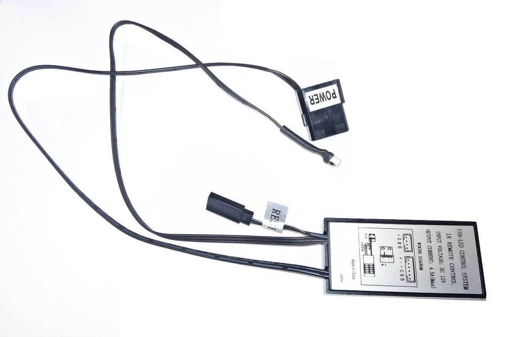 - dálkové ovládání (možnost volby barvy podsvětlení s možností vypnutí, řízení otáček ventilátorů s možností vypnutí)