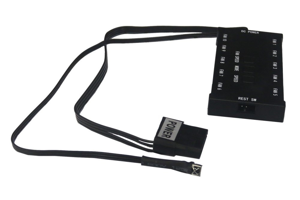 - řídící jednotka umožňuje připojení až 10ks ventilátorů a ovládání tlačítky přímo na jednotce, napájení jednotky přes konektor "molex" z PC zdroje