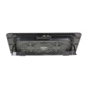 Podstavec je vybaven dvěma 120mm ventilátory, které zajišťují rovnoměrný odvod přebytečného tepla. Ať už se tak věnujete RPG hrám, FPS akcím, nebo online hraní, které dává vašemu počítači pěkně zabrat, nemusíte se obávat poklesu výkonu – podložka udrží váš notebook chladný i při dlouhém herním maratonu. Ventilátory jsou také opatřeny 8000 ventilačními otvory o průměru 2 mm (pro optimální průtok vzduchu) a navrch doplněny působivým modrým LED osvětlením, které stylově dokresluje gamingovou atmosféru.