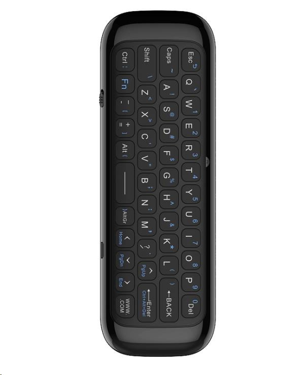 Akční nabídky na váš e-mailAirMouse a klávesnice 2v1, 6ti-osé měření pohybu, podpora ovládání hlasem, IR programovatelné tlačítko, vestavěná lithiová baterie, podpora Plug & Play, USB adaptér 2.4 GHz