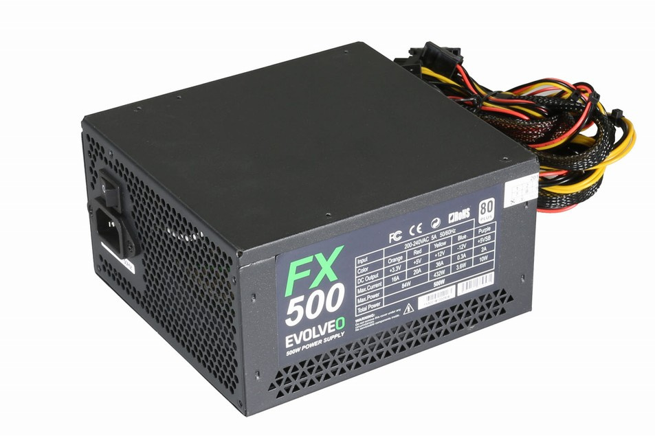 EVOLVEO FX 500 , zdroj 500W ATX, 14cm, tichý, 80+, bulk, záruka 3 roky