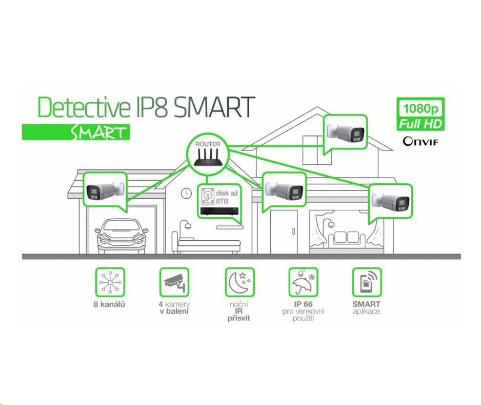 Akční nabídky na váš e-mail8 kanálový kamerový systém EVOLVEO Detective IP8 SMART je ideální řešení pro monitorování a bezpečnost vašeho domu, kanceláří, skladu nebo firmy. Jedná se o kompaktní kamerový systém, který využívá k připojení kamer lokální počítačovou síť. Kamery jsou před nastavené a předem spárované s NVR jednotkou. Jeho čistý obraz jak ve dne tak v noci využijete pro ochranu a monitorování nejen vaše rodinného domku nebo firmy, ale i pro dozor nad prodejnou nebo pro dohled nad veřejným prostranstvím. Veškeré události se nahrávají přímo na pevný disk, který vložíte do hlavní jednotky, a tak máte vaše data plně pod kontrolou. K záznamu máte přístup pomocí mobilní aplikace pro iOS a Android, nebo iCMS programu pro OS WIndows. Záznam lze také prohlížet na monitoru připojeném přímo do NVR jednotky pomocí HDMI nebo VGA kabelu.
