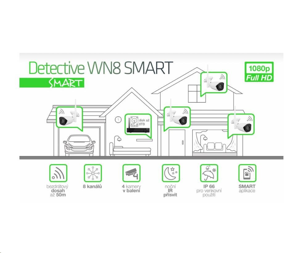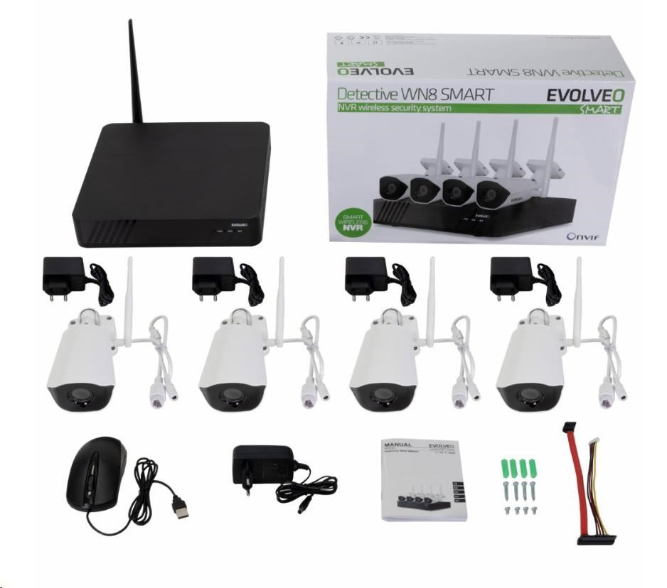 Akční nabídky na váš e-mail8 kanálový kamerový systém EVOLVEO Detective WN8 SMART je ideální řešení pro monitorování a bezpečnost vašeho domu, kanceláří, skladu nebo firmy. Systém můžete využít doopravdy všude díky bezdrátové technologii pracující na frekvenci 2,4GHz a vlastním privátním protokolu. Dosah kamer je v zástavbě 15-25m od hlavní jednotky. V otevřeném prostranství až 50m - mezi anténou hlavní jednotky a kamerou nesmí být žádná překážka a nesmí být v okolí žádné elektronické zarušení. Kamery jsou přednastavené a předem spárované s NVR jednotkou. Jeho čistý obraz jak ve dne tak v noci využijete pro ochranu a monitorování nejen vaše rodinného domku nebo firmy, ale i pro dozor nad prodejnou nebo pro dohled nad veřejným prostranstvím. Veškeré události se nahrávají přímo na pevný disk, který vložíte do hlavní jednotky, a tak máte vaše data plně pod kontrolou. K záznamu máte přístup pomocí mobilní aplikace pro iOS a Android, nebo iCMS programu pro OS WIndows. Záznam lze také prohlížet na monitoru připojeném přímo do NVR jednotky pomocí HDMI nebo VGA kabelu.