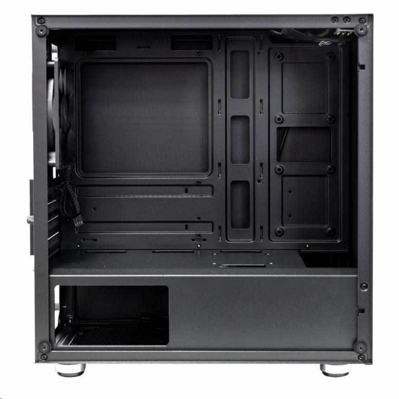 Akční nabídky na váš e-mailHerní mATX skříň s instalovaným PWM 120 mm ventilátorem a bočnicí z temerovaného skla. Skříň je určená pro základní desky podporující platformu Intel i AMD. Mimo formátu mATX je kompatibilní i s formátem Mini ITX. Napájecí zdroj se umísťuje do dolní části skříně. Spodní mřížka je osazena vysouvacím prachovým filtrem. Ovládání ventilátorů je možné pomocí připojení k základní desce.