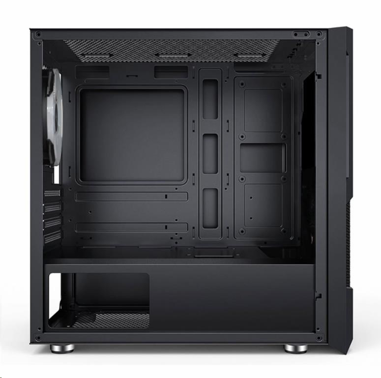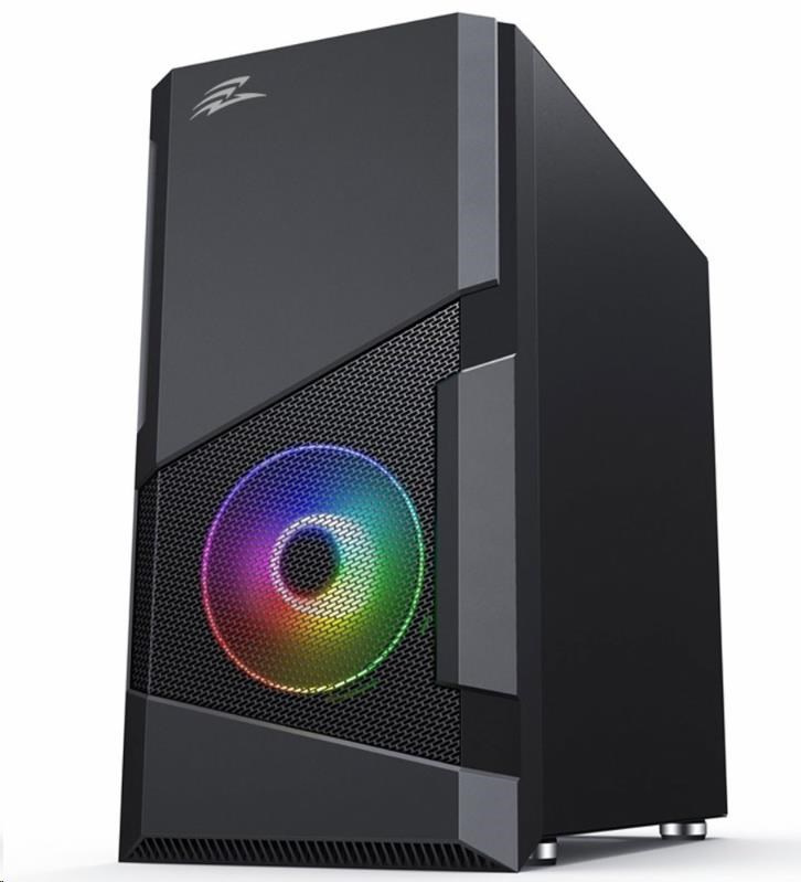 Akční nabídky na váš e-mailHerní mATX skříň s instalovanými RGB rainbow 120 mm ventilátoremy a bočnicí z temerovaného skla. Skříň je určená pro základní desky podporující platformu Intel i AMD. Mimo formátu mATX je kompatibilní i s formátem Mini ITX. Napájecí zdroj se umísťuje do dolní části skříně. Spodní mřížka je osazena vysouvacím prachovým filtrem. Ovládání ventilátorů je možné pomocí připojení k základní desce.
