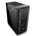 Herní ATX midi tower s instalovanými 4x RGB rainbow 120 mm ventilátory, které se ovládájí pomocí LED tlačítka na horní straně ovládacího panelu. Čelní mřížka přes celý přední kryt zajišťuje efektivní proudění vzduch. Levá strana skříně obsahuje bočnici z tvrzeného skla. Skříň je určená pro základní desky podporující platformu Intel i AMD. Mimo formátu ATX je kompatibilní i s formátem Micro ATXa Mini ITX. Napájecí zdroj se umísťuje do dolní části skříně. Spodní mřížka je osazena vysouvacím prachovým filtrem, horní prachový filter je uchycený magnety a je odnímatelný.