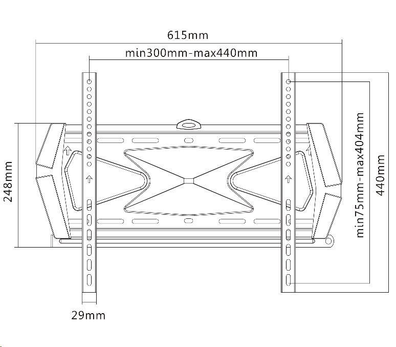 Technické údaje: nosnost 40kg podpora VESA 300x200 až 400x400 na televize a monitory s úhlopříčkou 42-55" systém pro uzamčení Tv na držáku (zámek není součástí balení) vzdálenost od zdi 22mm velmi pevná konstrukce designové krytky instalační materiál, vodováha barevné provedení černé záruka 3 roky Držák podporuje VESA: VESA300x200 VESA 300x300 VESA 400x200 VESA 400x300 VESA 400x400 v případě demontáže středového designového krytu umožníte nastavení VESA 100x100, VESA 200x100 a VESA 200x200.