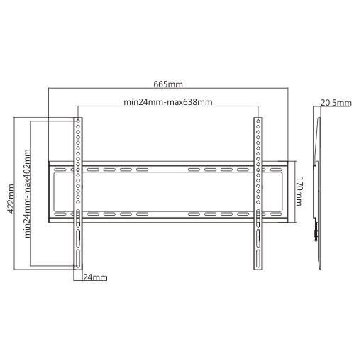 Poctivý fixní držák na televize i monitory 37-70", vzdálenost Tv od zdi 20mm, ocelová konstrukce, instalační materiál, VESA 100x100 až 600x400, nosnost 35kg.Více