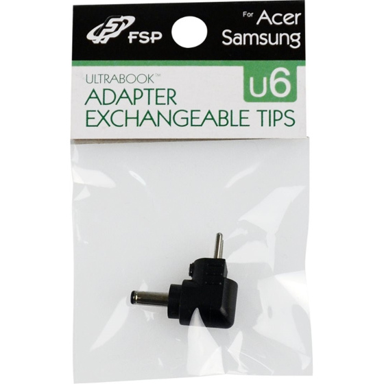 •vyměnitelná koncovka pro adaptéry FSP/Fortron•koncovka pro ultrabook (Acer, Samsung)•číslo koncovky: U6•barva: černá•rozměr vnější: 3•rozměr vnitřní: 1,1•délka: 8,2•retailové balení v sáčku