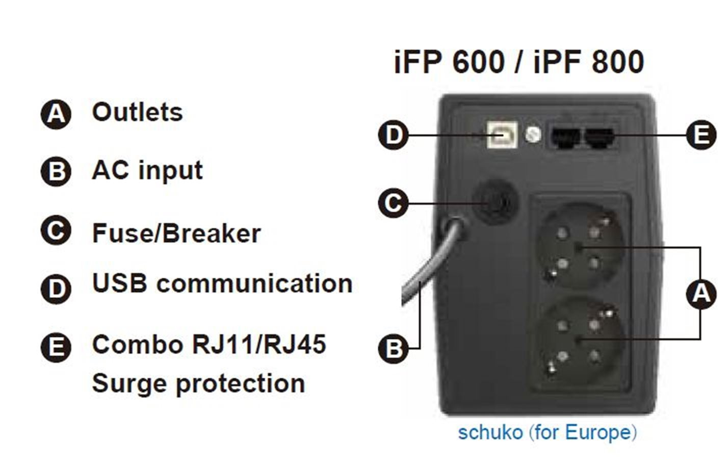 Počet výstupních zásuvek:2; Použití:Desktop; Provedení:Tower; Zdánlivý výkon VA:600; Topologie:Line-Interactive; Fáze (Vstup/Výstup):1:1; Komunikace:USB; Možnosti:Výstupní zásuvky SHUKO GR (vidlice); Typ výstupu:SCHUKO; Ochrana telefonní sítě; Ochrana datové sítě.Více