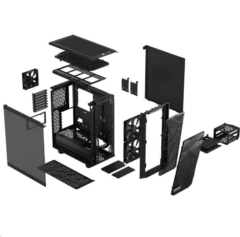 Popis FRACTAL DESIGN skříň Meshify 2 Compact Black TG Light Tint, USB 3.1 Type-C, 2x USB 3.0, bez zdroje, mATX