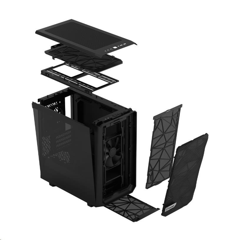 Akční nabídky na váš e-mailThe Meshify 2 Mini offers an excellent combination of airflow and flexibility, in a form-factor optimized for mATX. The bold yet refined exterior design, with its asymmetric angular mesh front, is complemented by a flush TG panel and a fully removable top.