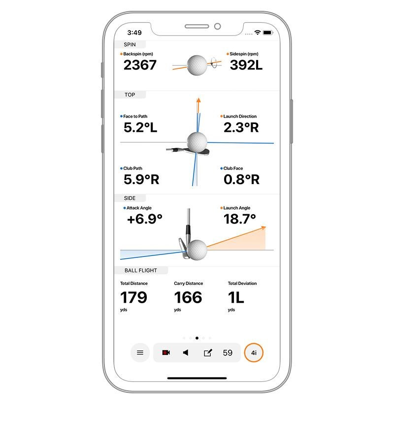Vylepšete si konzistentnost švihu pomocí sledovaných metrik, k nimž mimo jiné patří rychlost hlavy hole, rychlost míčku, rotace míčku, úhel odpalu, směr odpalu nebo smash factor.