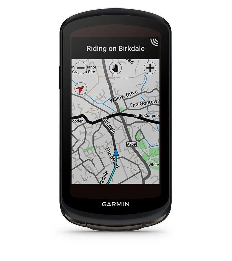 Při navigaci po trase poskytuje Edge podrobné navigační pokyny a navíc i odhad času dojezdu do cíle, do průjezdních bodů v trase a navíc i časy západu a východu Slunce.