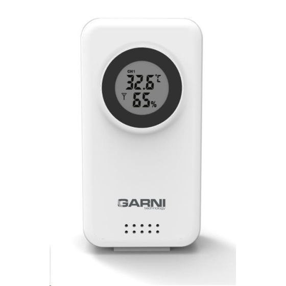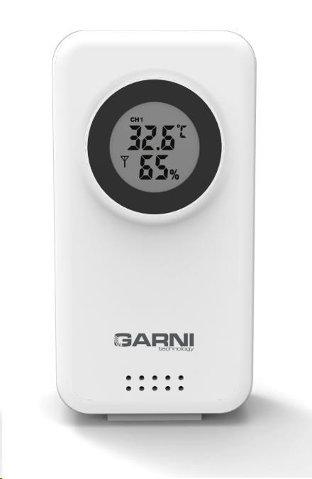 Bezdrátové čidlo pro měření teploty a relativní vlhkosti, určeno pro meteorologické stanice GARNI 550 EASY, GARNI 560 EASY, GARNI 560 EASY II, GARNI 570 EASY, GARNI 570 EASY II - vlhkosti odolné, krytí IP44 (odolné proti stříkající vodě) - kruhový displej o průměru 19 mm - velikost číslic na displeji: teplota a relativní vlhkost 5 mm - měření teploty a relativní vlhkosti - 3 kanály - maximální RF výkon 10 dBm (10 mW) - možnost postavení.