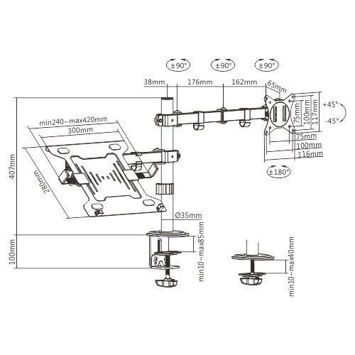 Akční nabídky na váš e-mailNastavitelný držák na stůl s ramenem pro monitor a přihrádkou na notebook