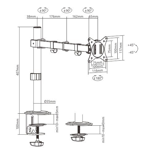| Rozsah naklánění | +45° ~ -45° |