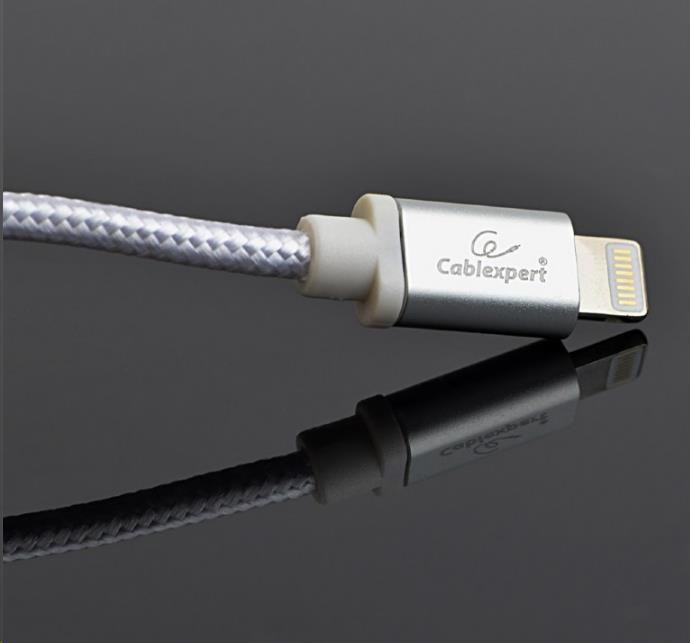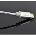 Cotton braided 8-pin cable with metal connectors, 1.8 m, silver color, blister