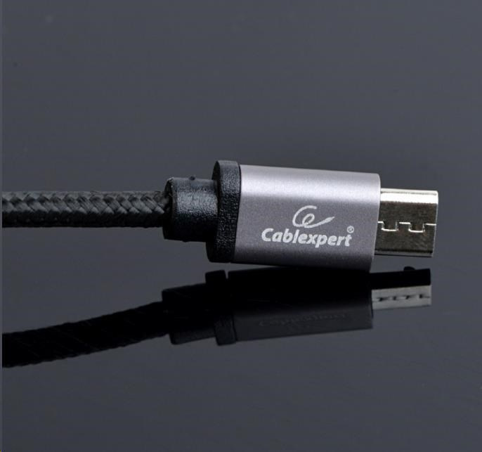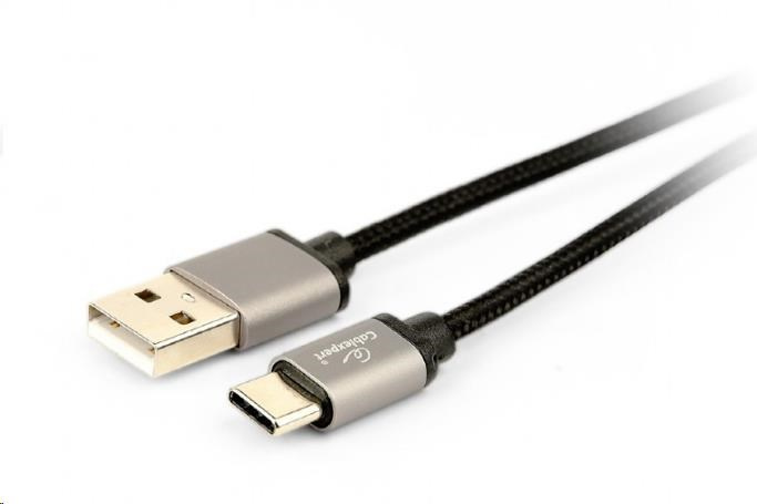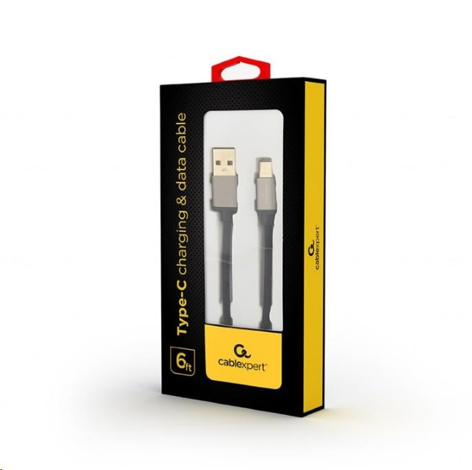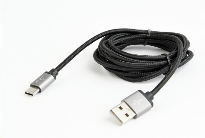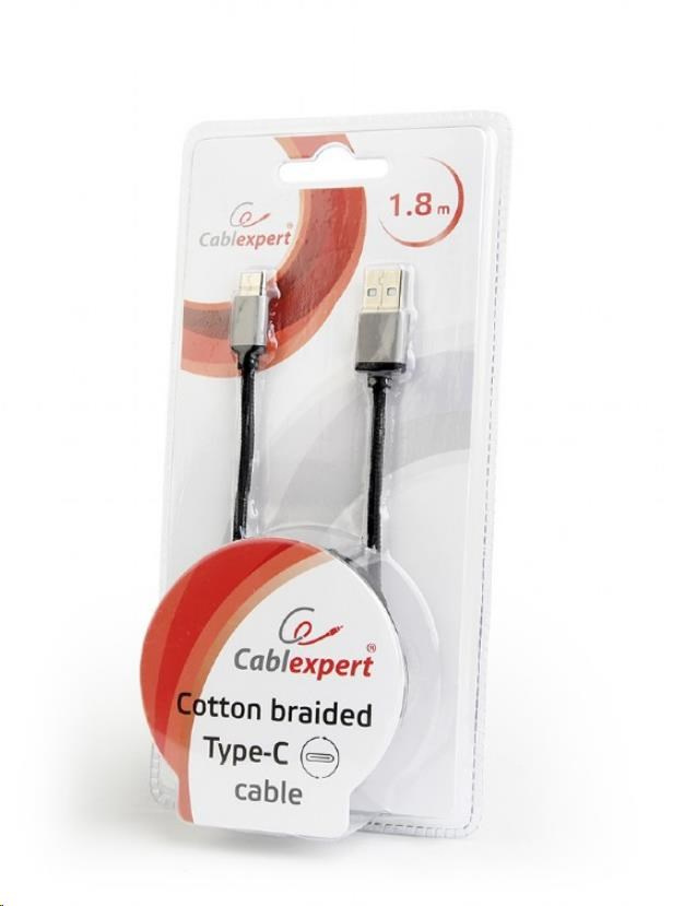 Cotton braided Type-C USB cable with metal connectors, 1.8 m, black color, blister