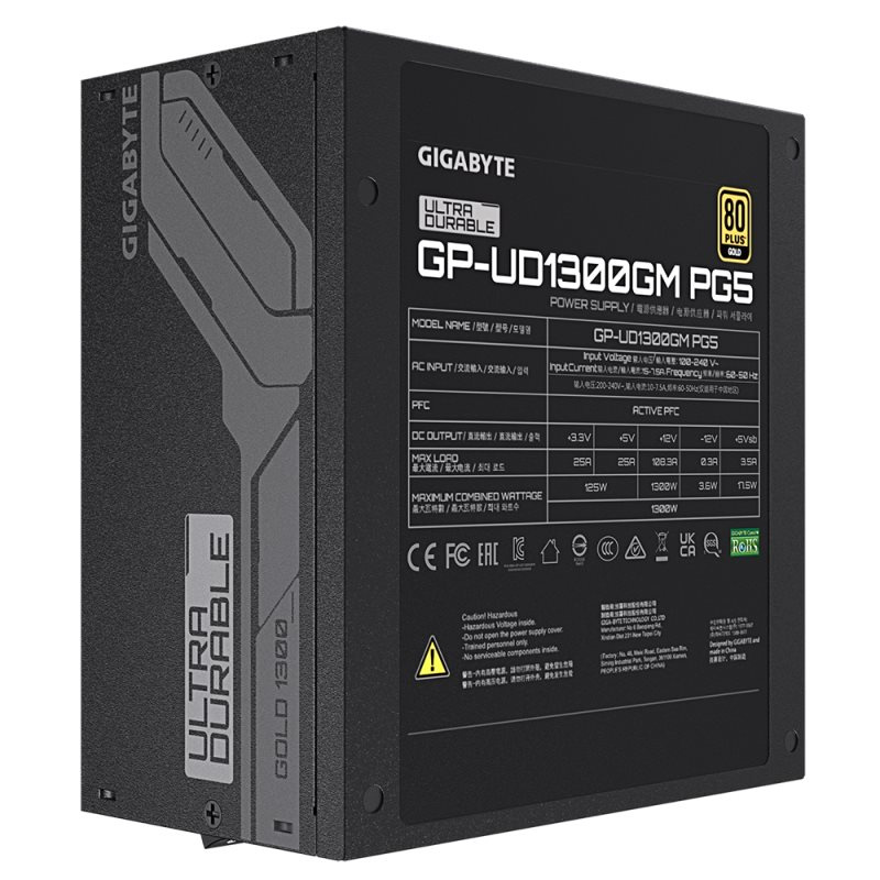 UD1300GM PG5 dokáže vydržet až 2x celkový výpadek výkonu. Je plně kompatibilní se standardem Intel PSDG (Power Supply Design Guide) ATX 3.0, který podporuje až 200% výkyvy výkonu, dosahuje 70% účinnosti nízké zátěže a vyhovuje požadovaným normám časování napájení.