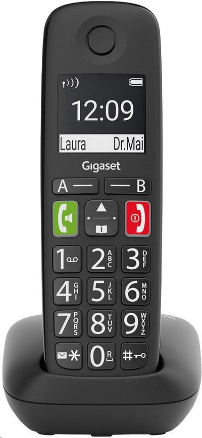 Bezdrátový telefon Gigaset E290 na první pohled zaujme velkým displejem a přehlednými tlačítky. Neobsahuje žádné zbytečné vychytávky, které pouze znesnadňují používání, aby se s ním sžil skutečně každý uživatel. Skvěle se hodí do domácností, kde ho můžou používat všechny generace od dětí až po seniory. Svým ergonomickým designem padne do ruky, aby byl hovor co nejvíce pohodlný. Baterie mu zajistí až 10 hodin nepřetržitého hovoru a až 200 hodin v pohotovostním režimu. Přístroj lze používat také pro monitoring místnosti, takže tento telefon může suplovat dětskou chůvičku. Na displeji je možné vidět ID volajícího, takže vždy víte, kdo se vás snaží sehnat.