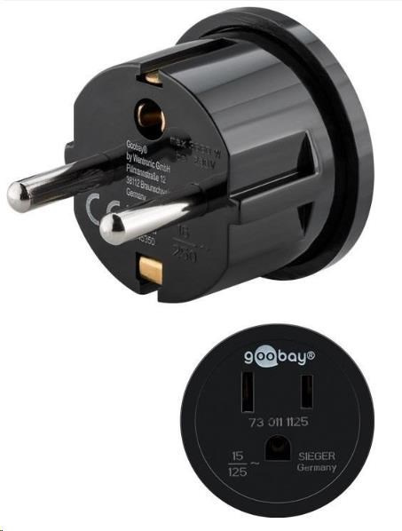 Adaptér umožňuje zapojit USA nebo Japonské spotřebiče, nabíječky nebo kabely do české zásuvky. Adaptér nemění napětí sítě.