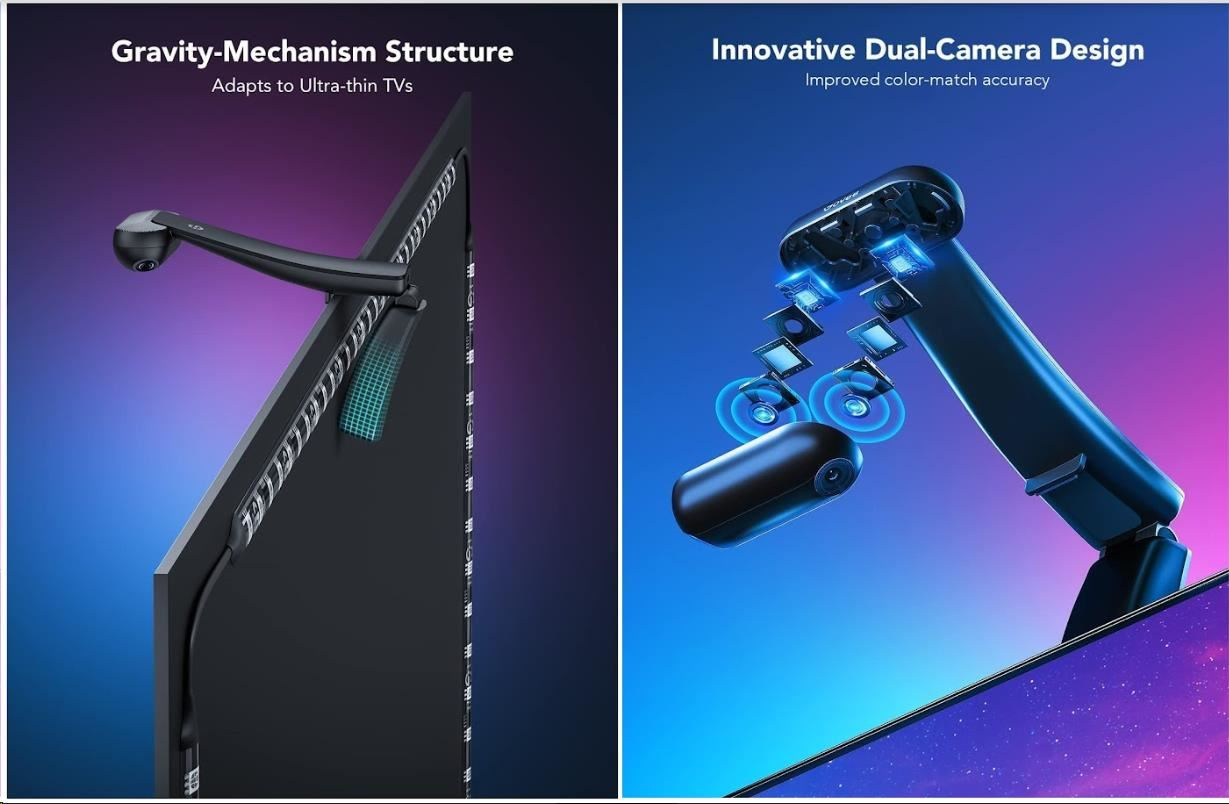 Inovativní design kamery s dvěma čočkami zachycuje obsah přesněji a díky tomu synchronizuje barvy z obrazovky s větší přesnosti. Montážní konstrukce umožňuje snazší instalaci na horní část televizní obrazovky, včetně ultratenkých TV.